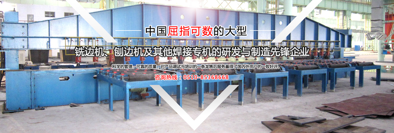 公司是中國(guó)金屬銑削切割自動(dòng)焊接工藝的搖籃,公司是國(guó)內(nèi)制造有壓梁、無(wú)壓梁銑邊機(jī)、刨邊機(jī)及其他焊接專機(jī)的專業(yè)廠家。取得國(guó)家專利局頒發(fā)的最新銑、刨邊機(jī)產(chǎn)品專利證書(shū)。通過(guò)了ISO9001.2000國(guó)際質(zhì)量體系認(rèn)證,并獲得了“全國(guó)用戶滿意產(chǎn)品”、“江蘇省質(zhì)量信得過(guò)AAA級(jí)品牌企業(yè)”的榮譽(yù)稱號(hào)。銷售網(wǎng)絡(luò)遍布全國(guó),部分產(chǎn)品出口東南亞及歐美等國(guó)家。公司本著:質(zhì)量為首,用戶至上,信譽(yù)為本...     【詳細(xì)】
